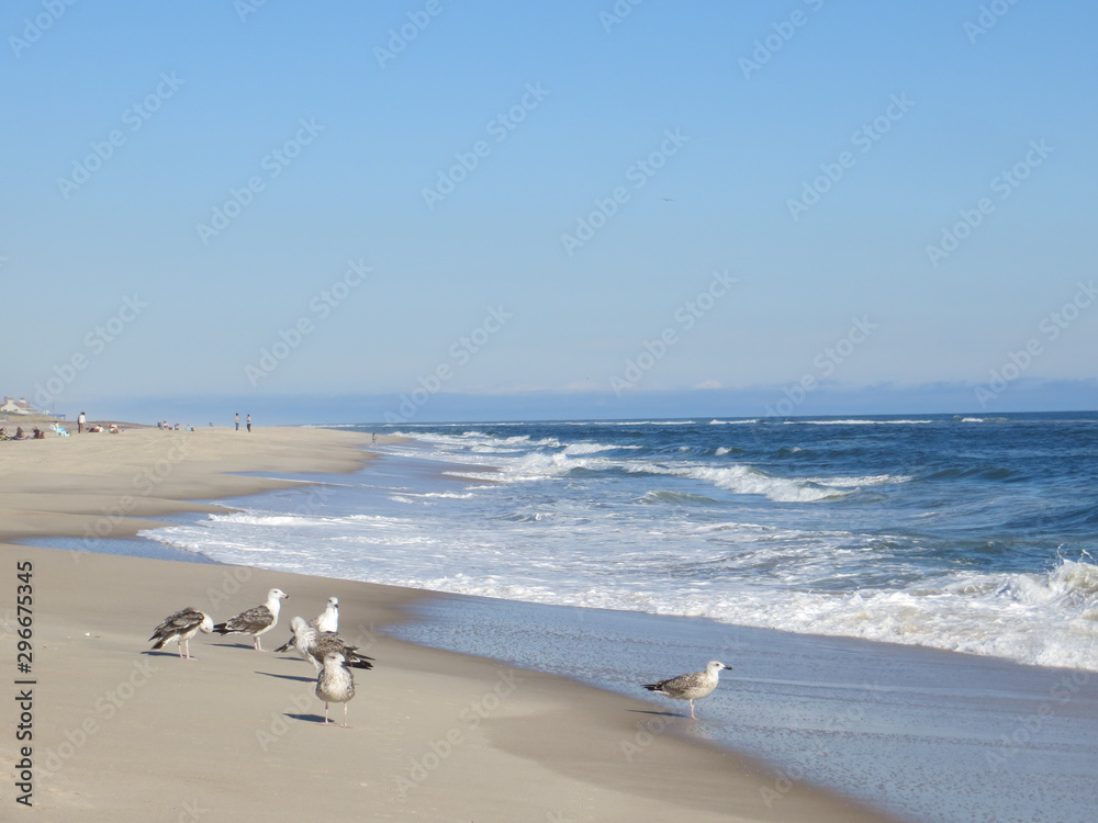 A Flock of Seagulls on the Beach at Cooper's Beach in Southampton, Long Island, NY