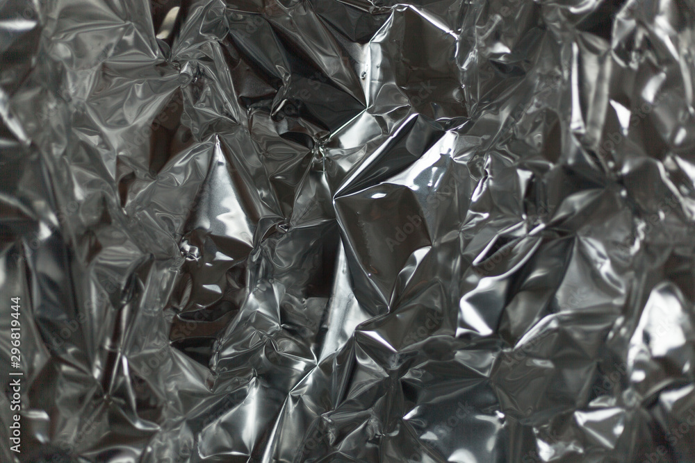 Full frame take of a sheeT of crumpled silver aluminum foil