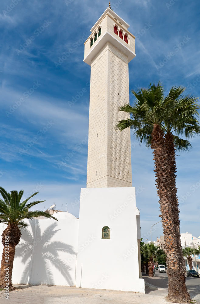 Minaret against the blue sky