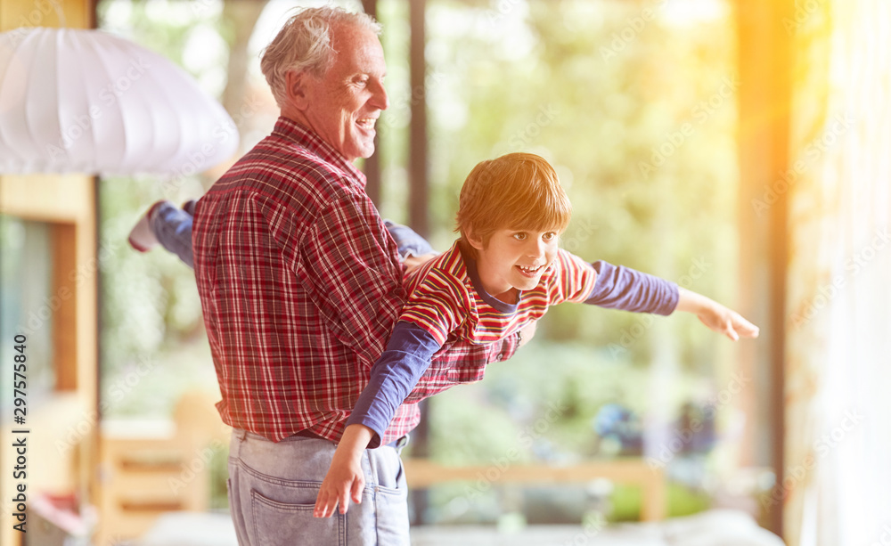 Opa spielt mit seinem Enkel zu Hause