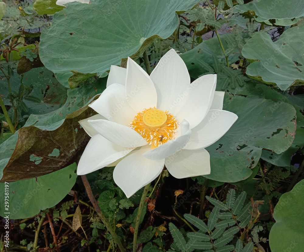 Lotus on green leaf and water surface is considered a symbol of virtue. Belief has existed since the modern era. Lotus has been called “ The queen of Aquatic Plant” is a water plant with petioles.