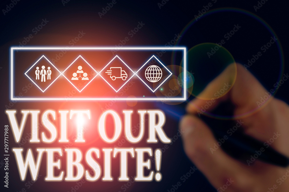 Writing note showing Visit Our Website. Business concept for visitor who arrives at web site and proceeds to browse Picture photo network scheme with modern smart device