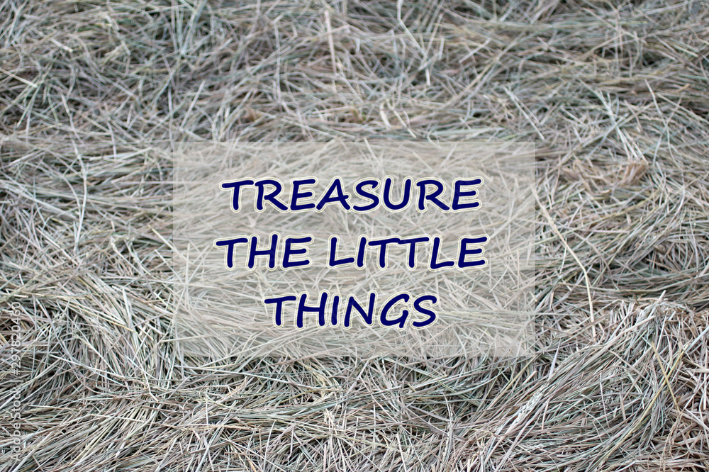 Inspirational quote - Treasure the little things. With natural backgorund of paddy straw pattern texture. Words of wisdom concept.