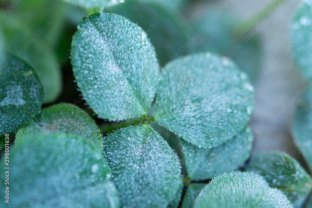 Clover in morning dew droplets