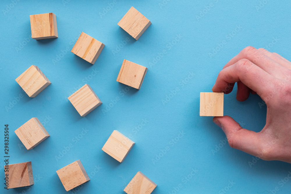 Hand choosing a wooden block from a set. Business choice concept