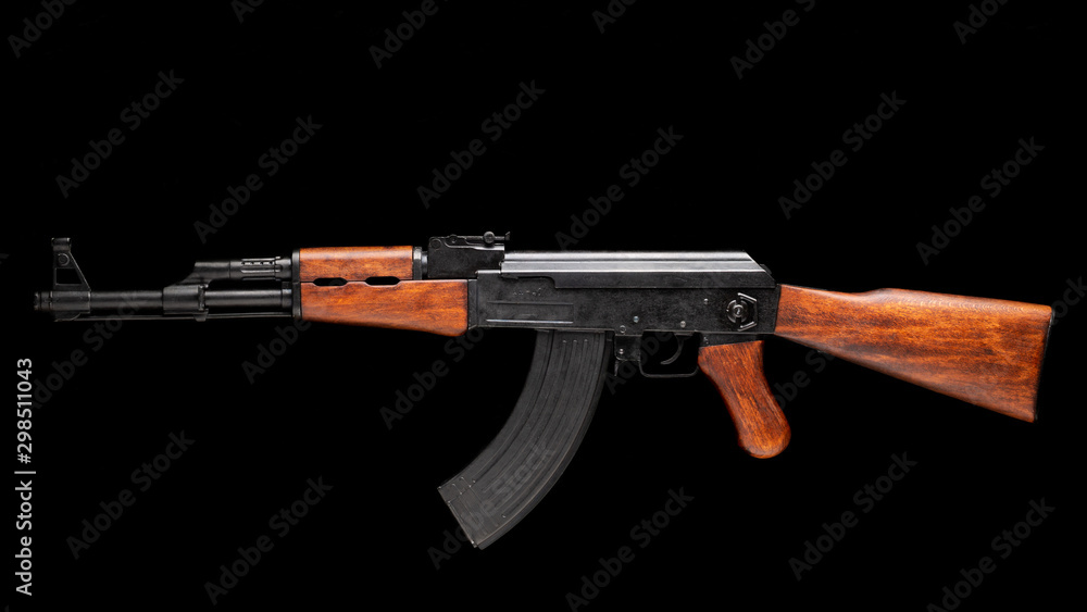 Аssault rifle AK-47 isolated on black. Kalashnikov assault rifle.