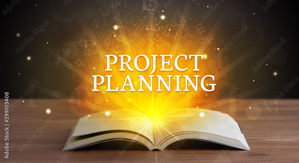 PROJECT PLANNING inscription coming out from an open book, educational concept