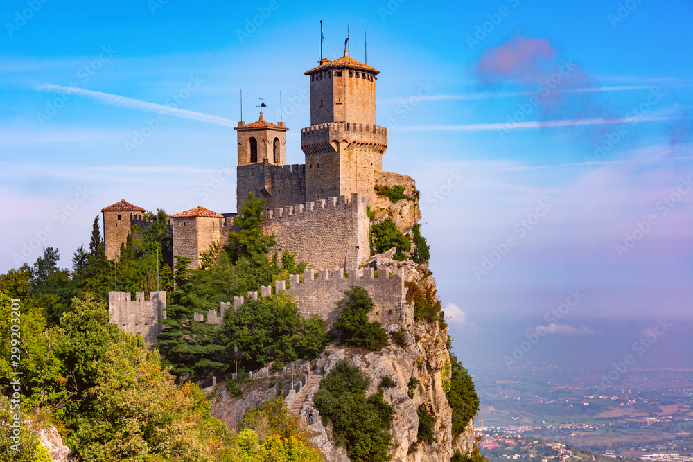 First tower Guaita fortress in the city of San Marino of the Republic of San Marino in sunny day