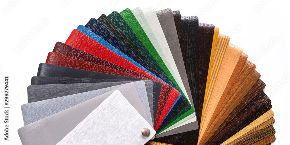 Presentation of samples. Samples for lamination. Multi-colored laminate. Color palette.