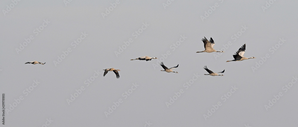 Kraniche (Grus grus) auf dem Zug - migrating cranes