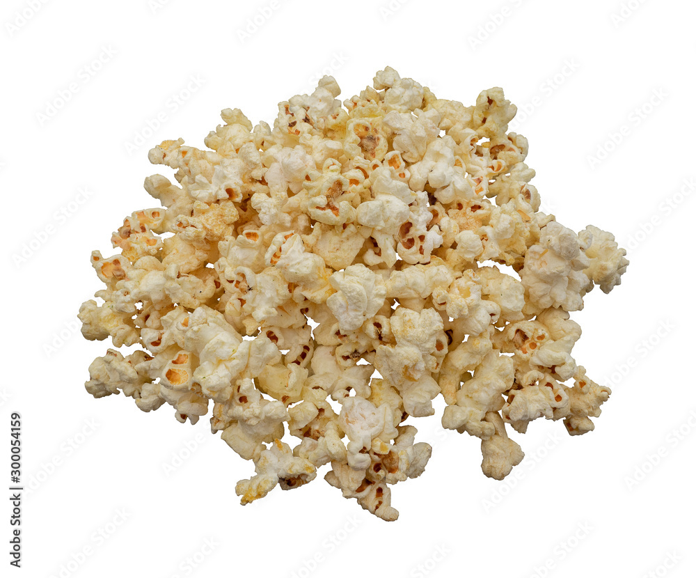 popcorn taste cheese and butter pile and spread isolated on white background.Top view and close up.Take at studio photo.