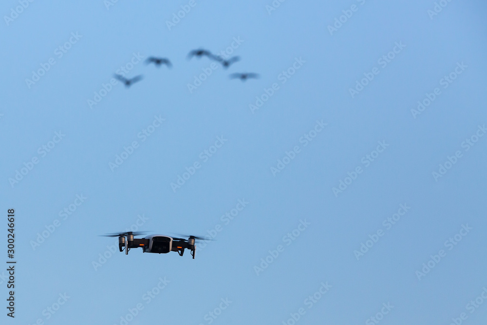 Drone filming and birds return to their nests in the late afternoon