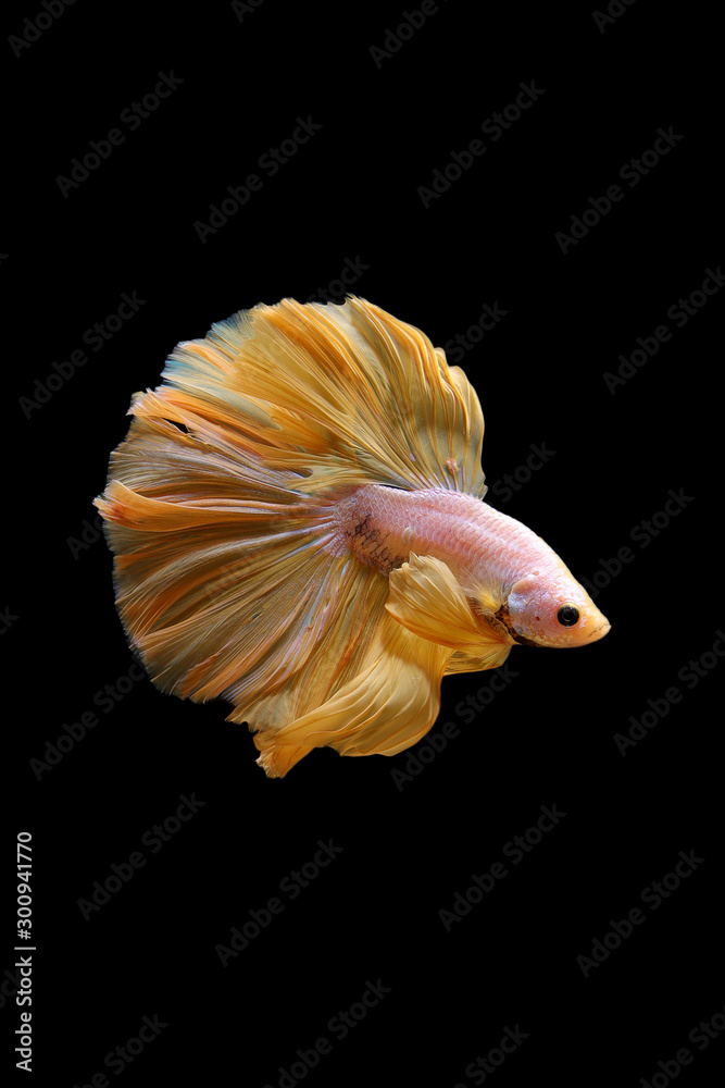 Yellow gold color of Siamese fighting fish betta Thailand fish movement on background