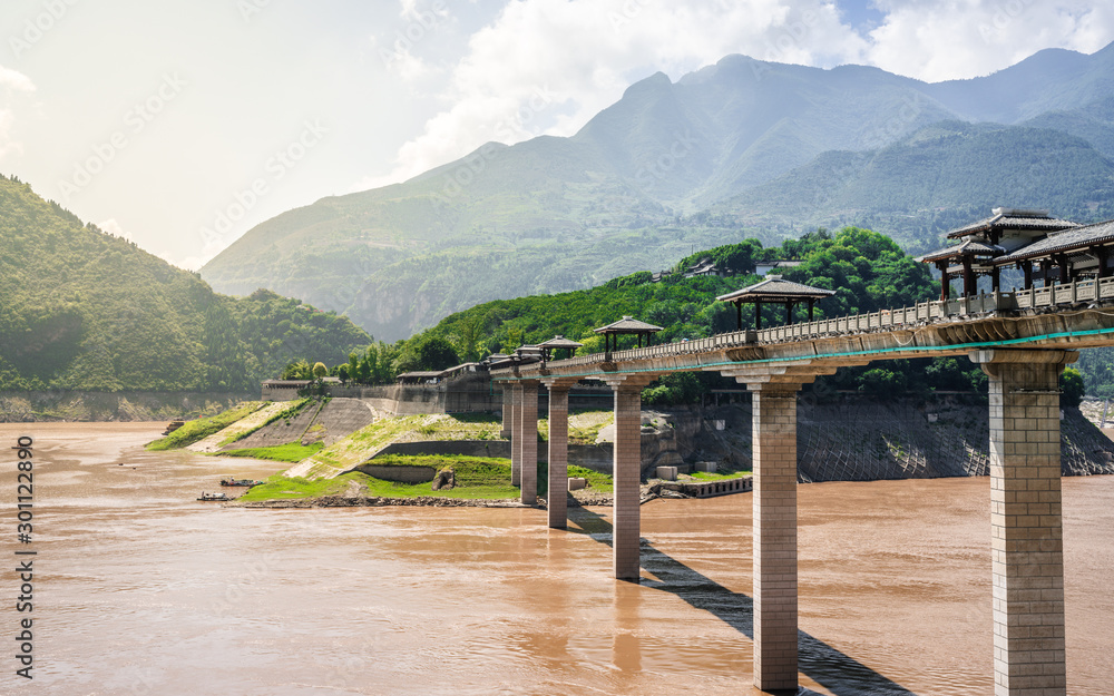 Scenic view of traditional bridge at the entrance of Baidi Fortress white emperor city in Baidicheng China