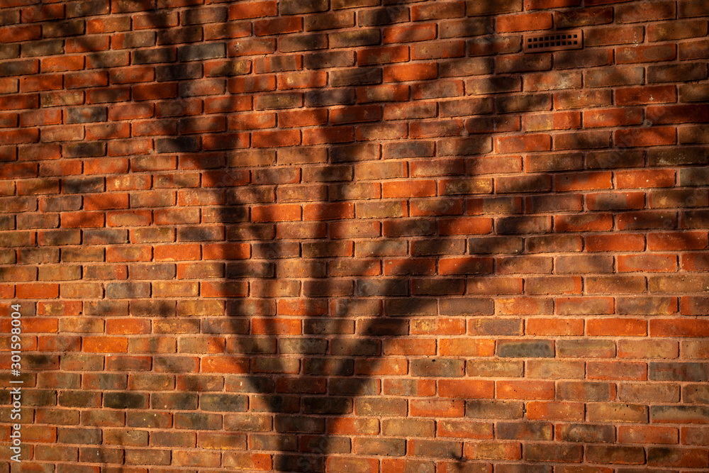 tree branch shadows on a brick wall