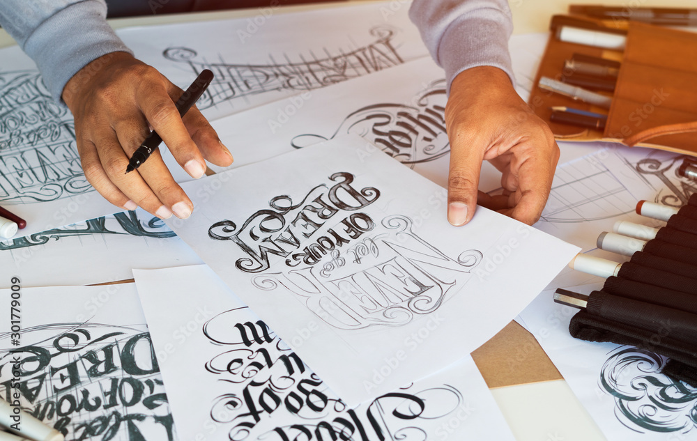 Designer designing drawing sketch pattern geometric flower seamless wallpaper fabric textile fashion industry. artistic design studio..