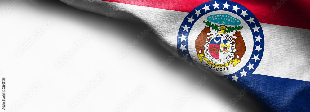 Fabric texture of the Missouri Flag background - flag on white background - right top corner - free copy space