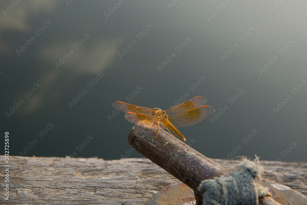 Amazing Flame Skimmer Orange Dragonfly Macro Photography. Beautiful Golden wing skimmer or darter or meadowhawks of the Libellulidae family.