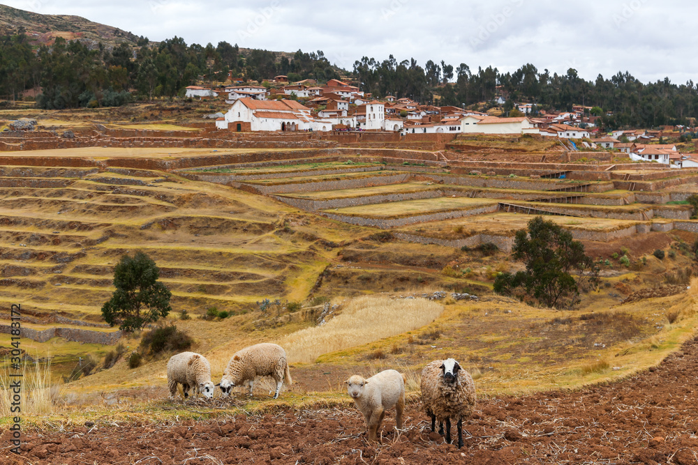 A colonial church built on Inca ruins. Chinchero, Peru.