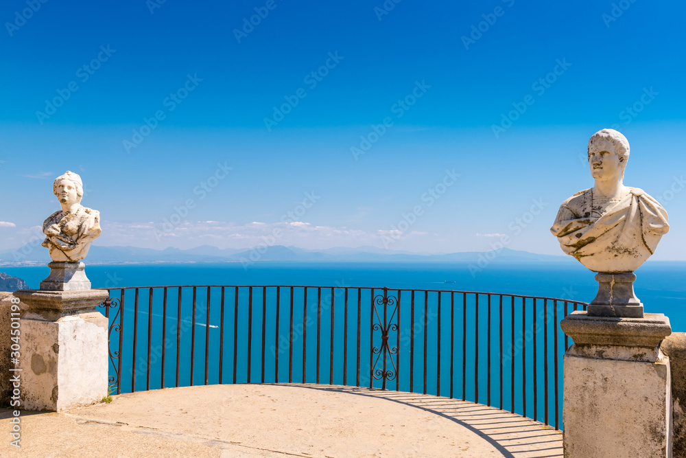 Marble busts at the terrace in Ravello at sunny day, Amalfi coast, ItalyMarble bust at the terrace in Ravello at sunny day, Amalfi coast, Italy