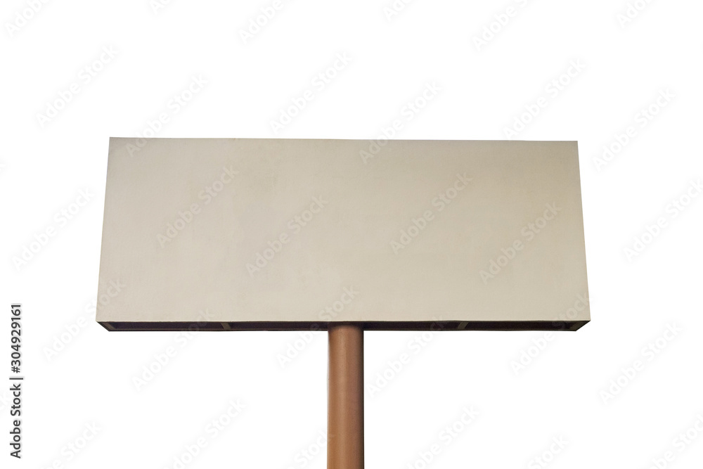Blank sign beige colour square shape stick on the steel pole isolated on white background.have space for put text.
