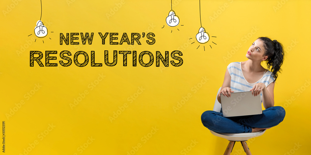 New Year's Resolutions with young woman using a laptop computer
