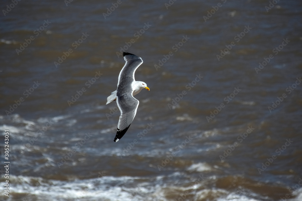 Flying seagull. Port of Essaouira. Morocco. Africa