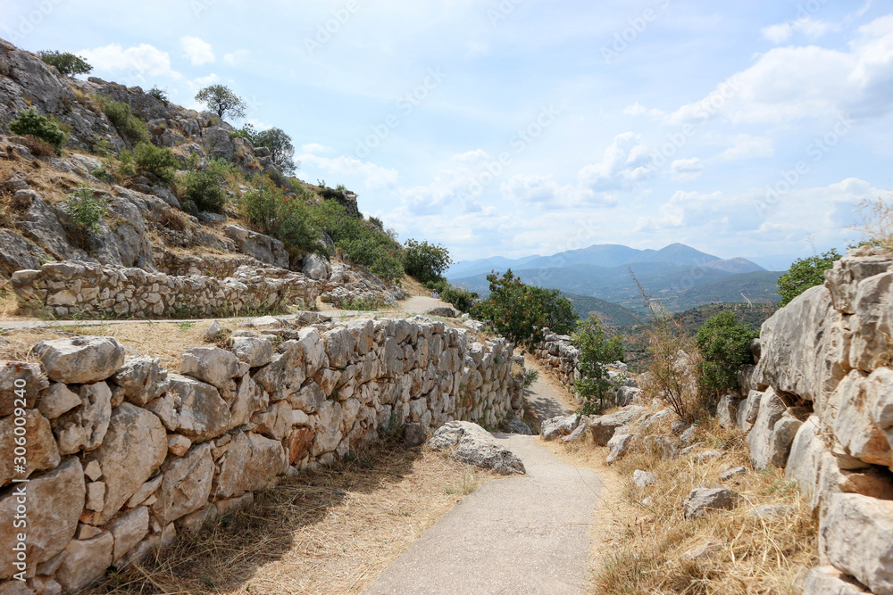 Cyclopean stone walls in ancient greek city Mycenae peloponnese greece