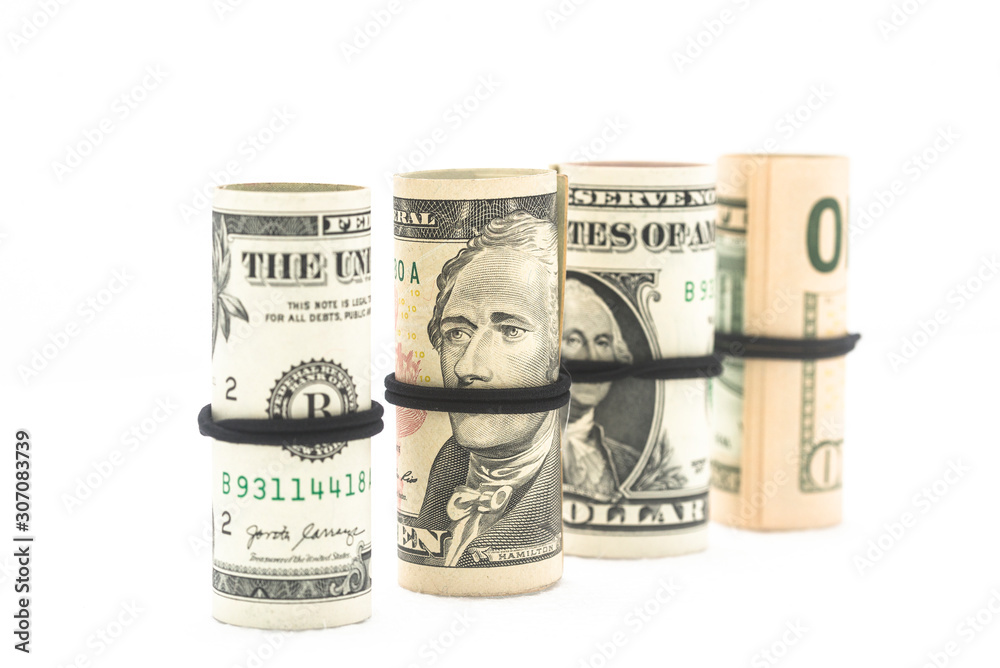 Rolls of dollars are isolated on a white background