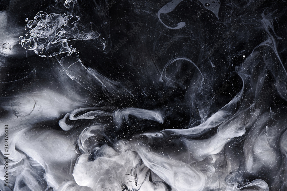 Abstract black and white swirling smoke background. Cumulus thunderclouds, mysterious and frightening sky. Paints colors of depression and negative emotions