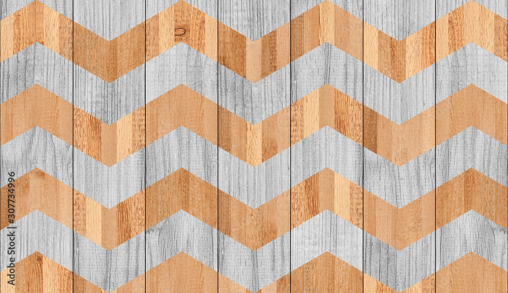 Brown and white wooden wall with zig zag pattern. Light wood texture for background.
