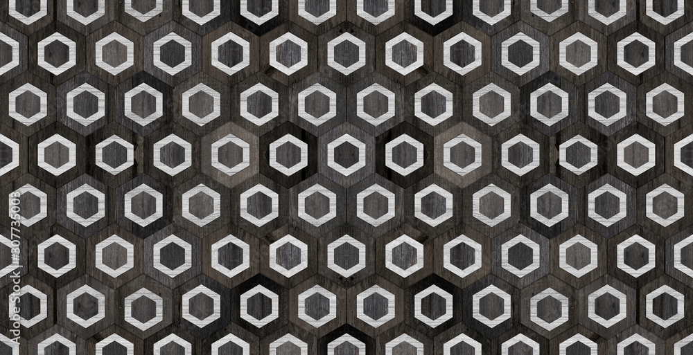 Black and white wooden wall with hexagonal pattern. Wood texture for background.