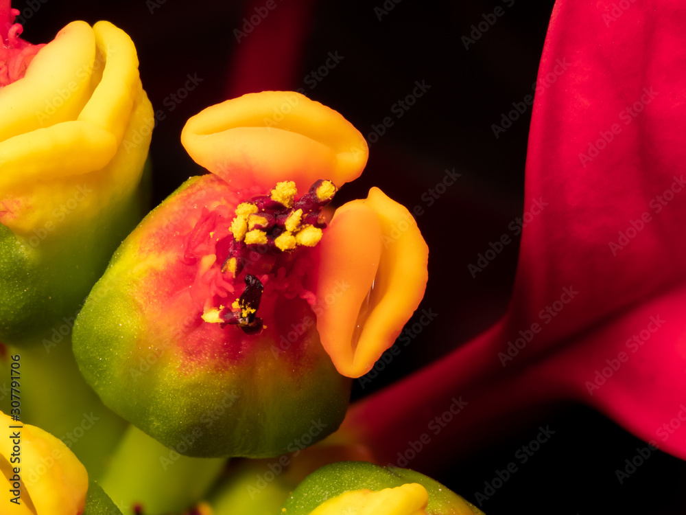 Poinsettia buds extreme close up