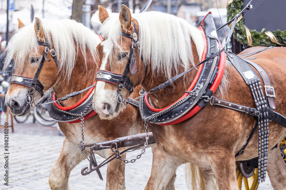 Pferde vor Kutsche am Christkindlesmarkt in Nürnberg