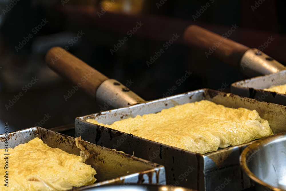 Japanese "tamagoyaki" omelettes on a street food market in Tokyo