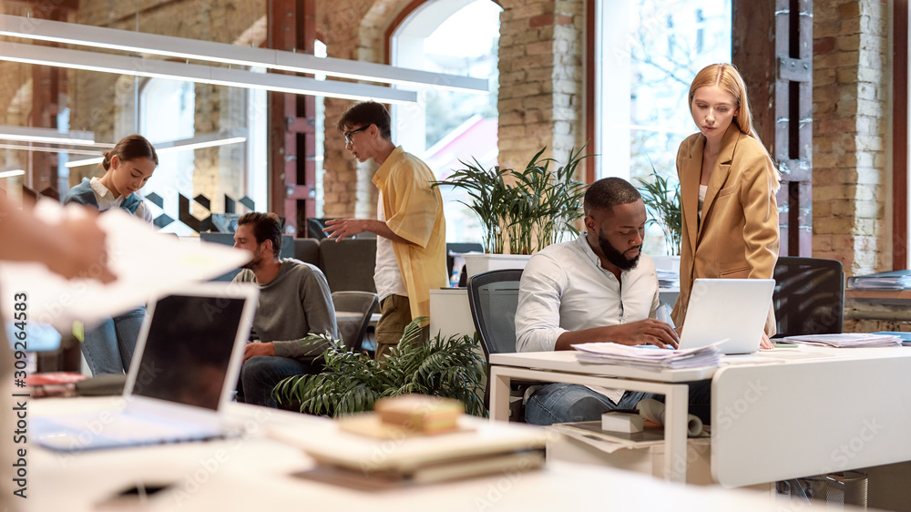 Successful team. Group of multiracial business people working together in the creative co-working space