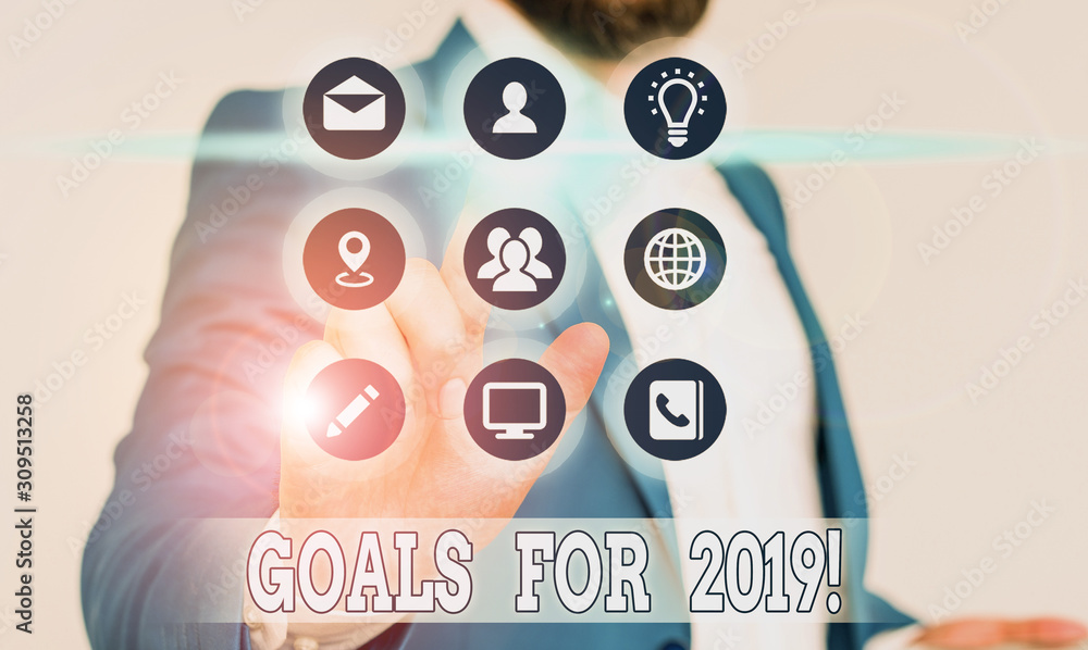 Conceptual hand writing showing Goals For 2019. Concept meaning object of demonstratings ambition or effort aim or desired result