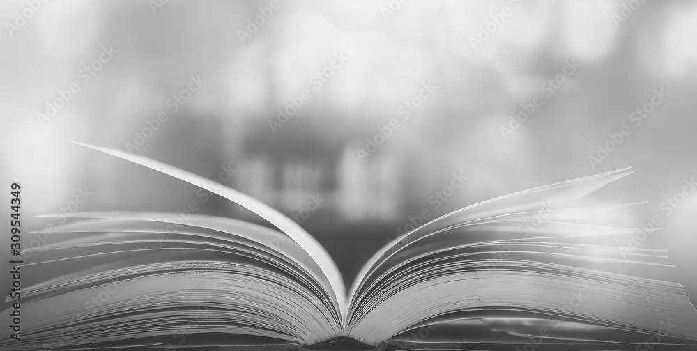 The concept of education by planting a tree of knowledge in the opening of an old book in the library and the magical magic of light that flies to the destination of success. Beautiful background