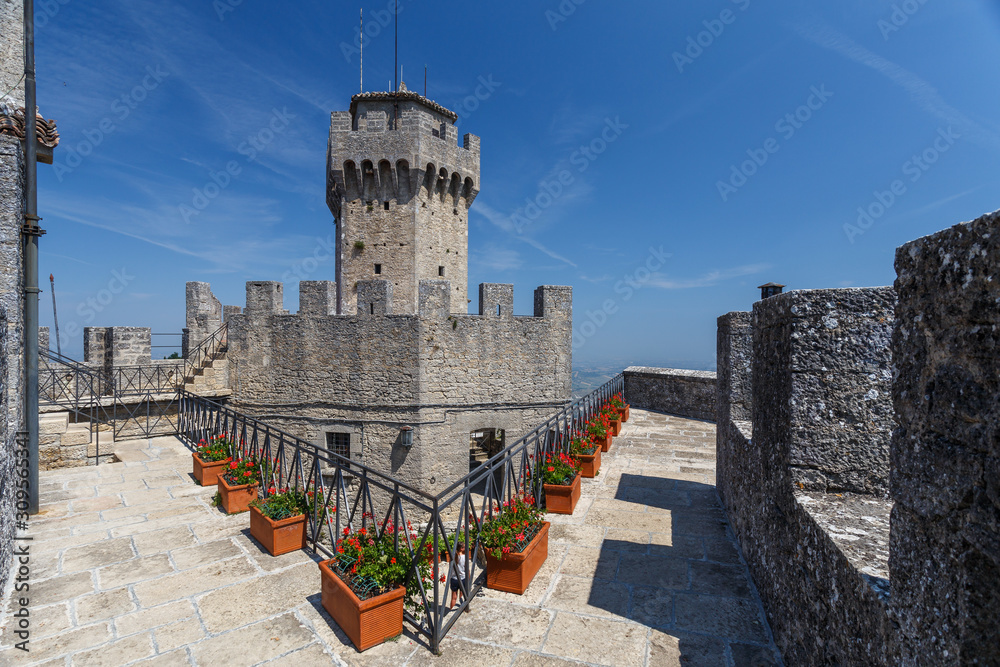 SAN MARINO / SAN MARINO - JULY 2015: View point on Inner walls of one of San Marino castles, good for tourists