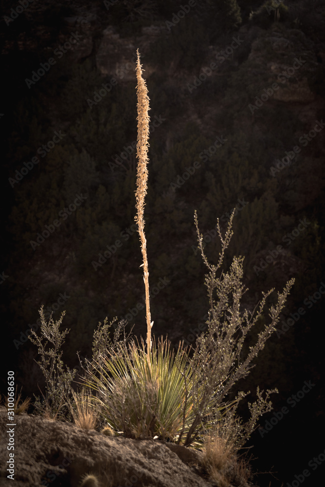 A yucca plant on the side of a cliff in New Mexico.