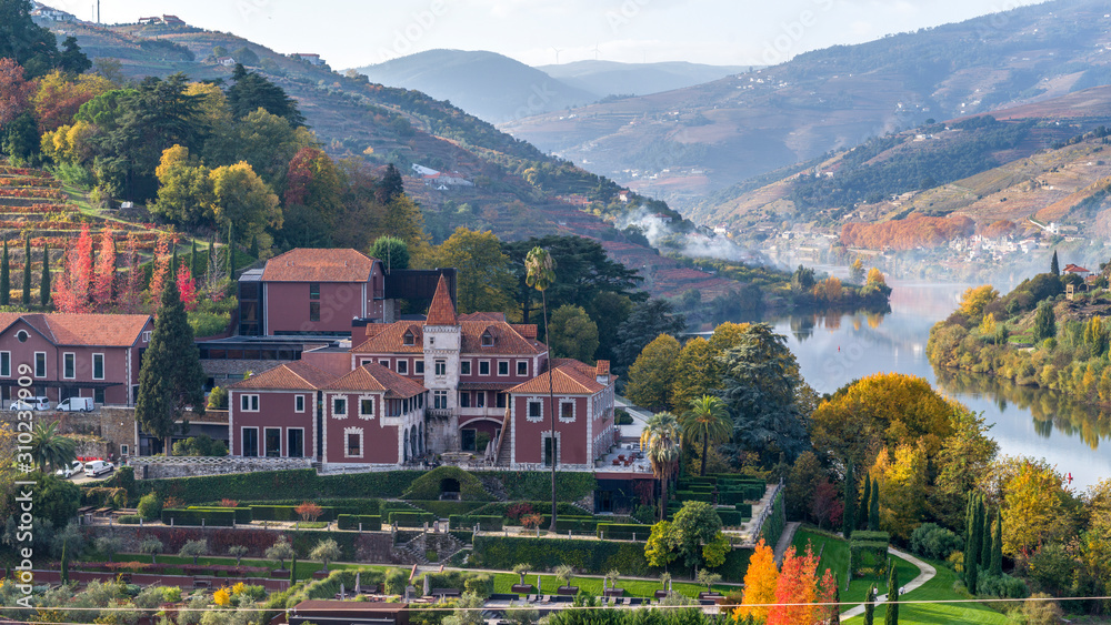 Elevated view of Six Senses Hotel, Douro River, Douro Valley, Portugal