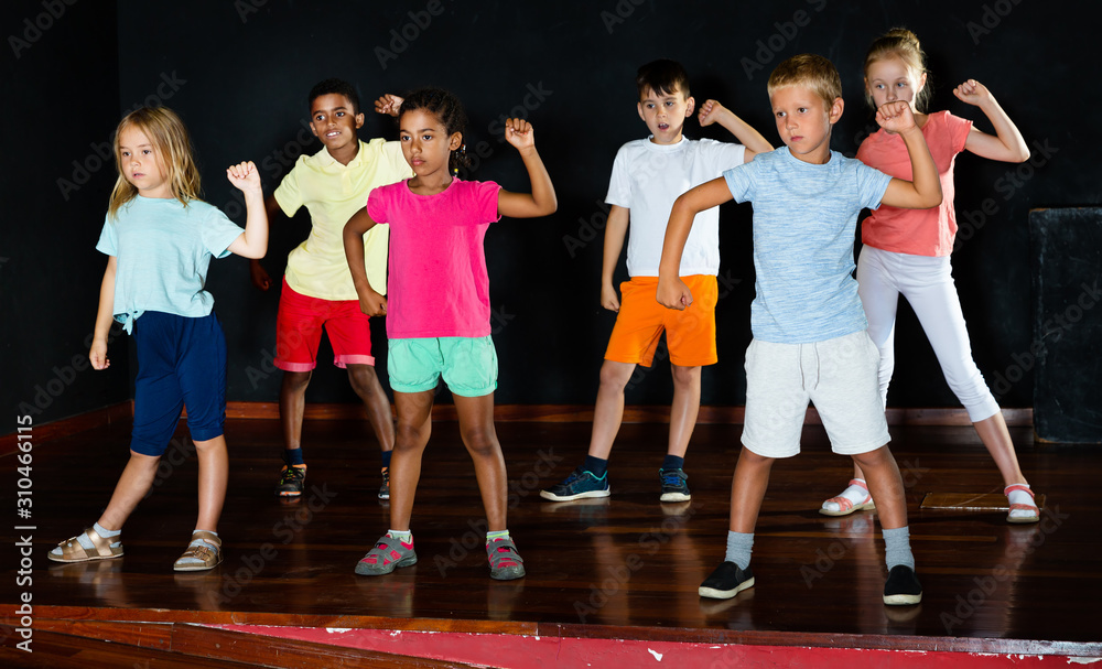 Children studying modern style dance in class