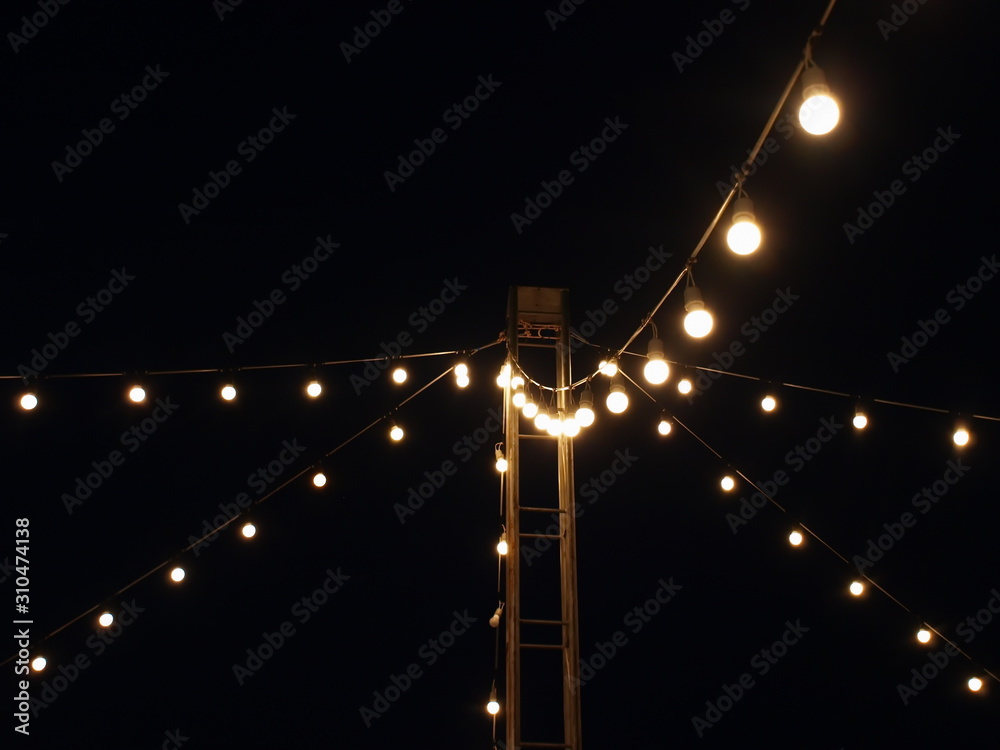Soft focus light bulbs that decorate during celebrations or at night parties On the night background