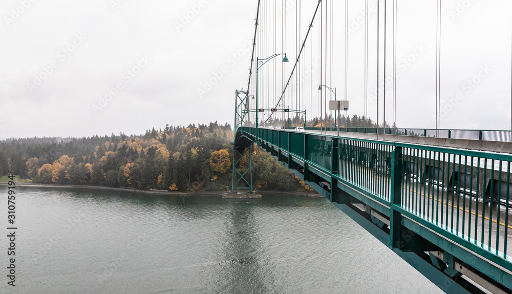 Un puente con tiradores cruza el océano pacífico en Vancouver