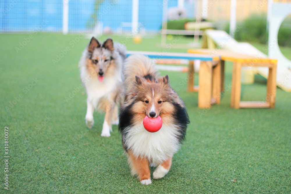 Happy puppies in a private playground