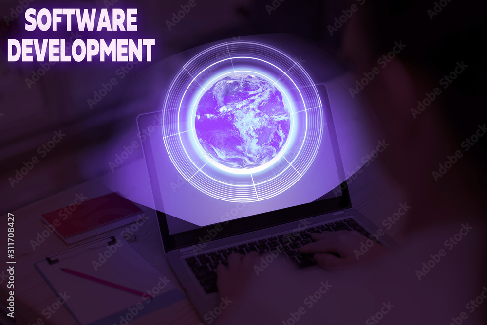Conceptual hand writing showing Software Development. Concept meaning software is created using a specific programming Elements of this image furnished by NASA