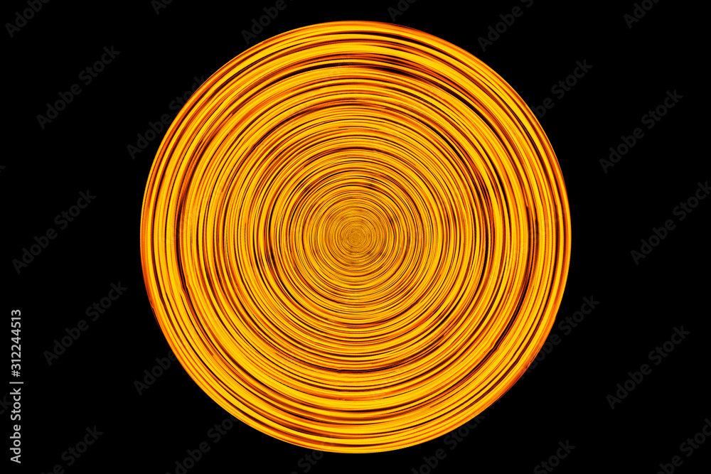 Abstract neon circle lines isolated on black background. Round cricle shape colorful led lights long exposure rotation photo.