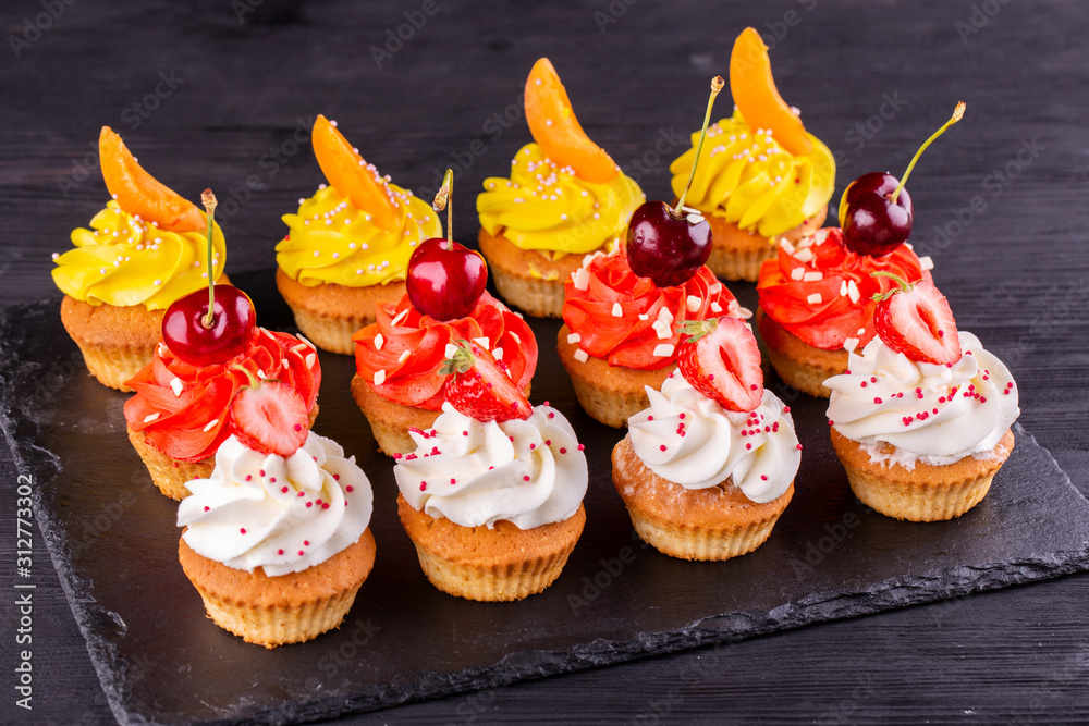 Capcakes with fresh berries and cream