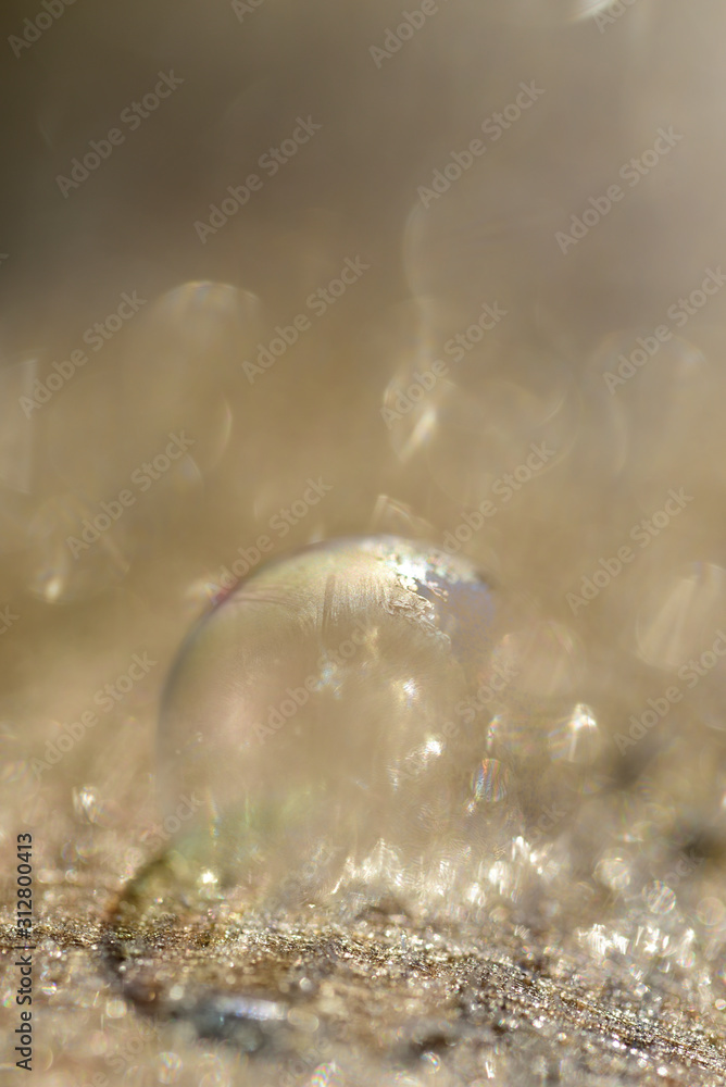 Background with a romantic frozen soap bubble in bright sunlight, on which the light rays are reflected with space for text