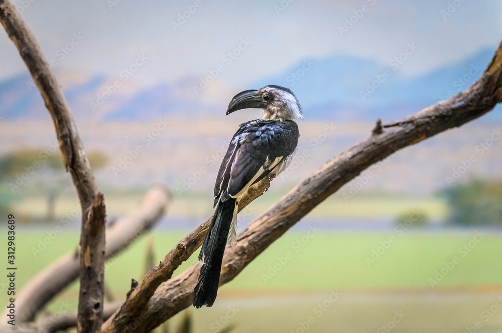 Von der Decken's Hornbill perched on a dry branch observing its environment, on the lookout for predators